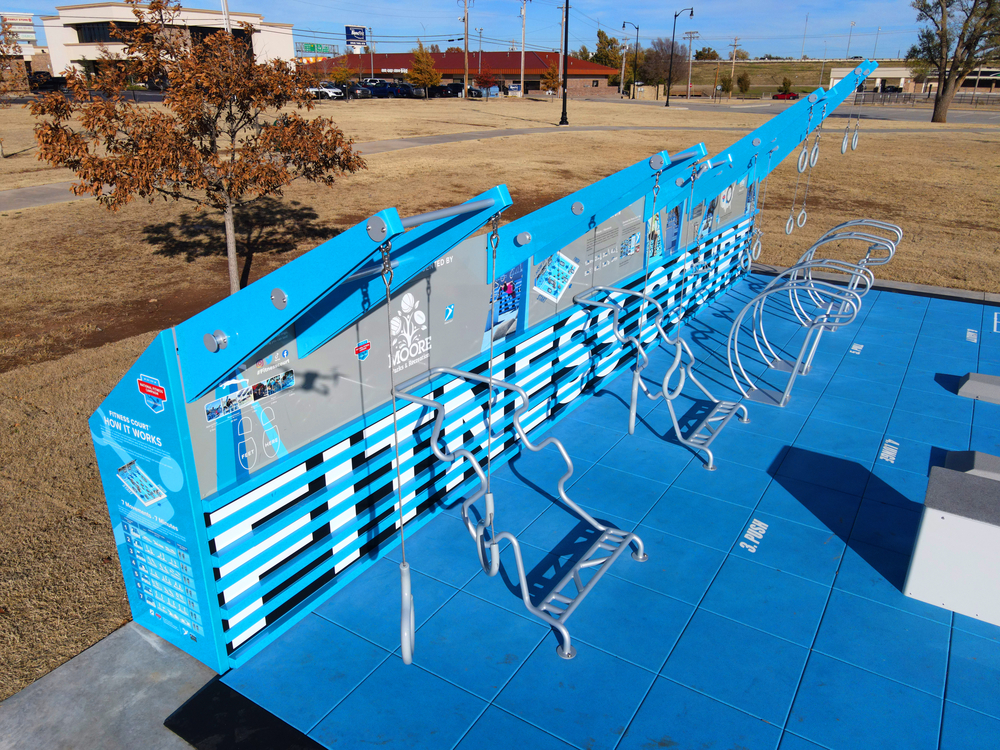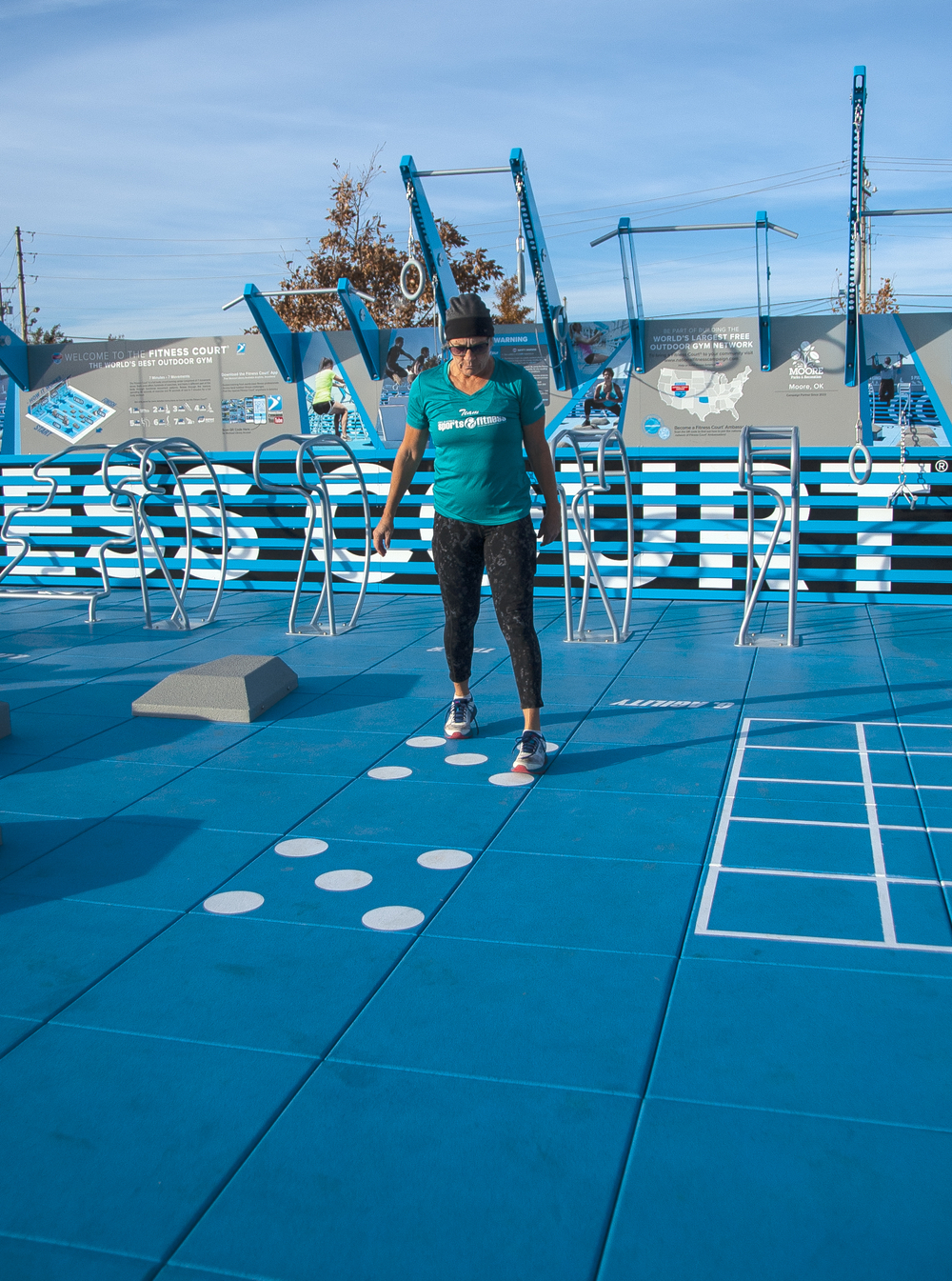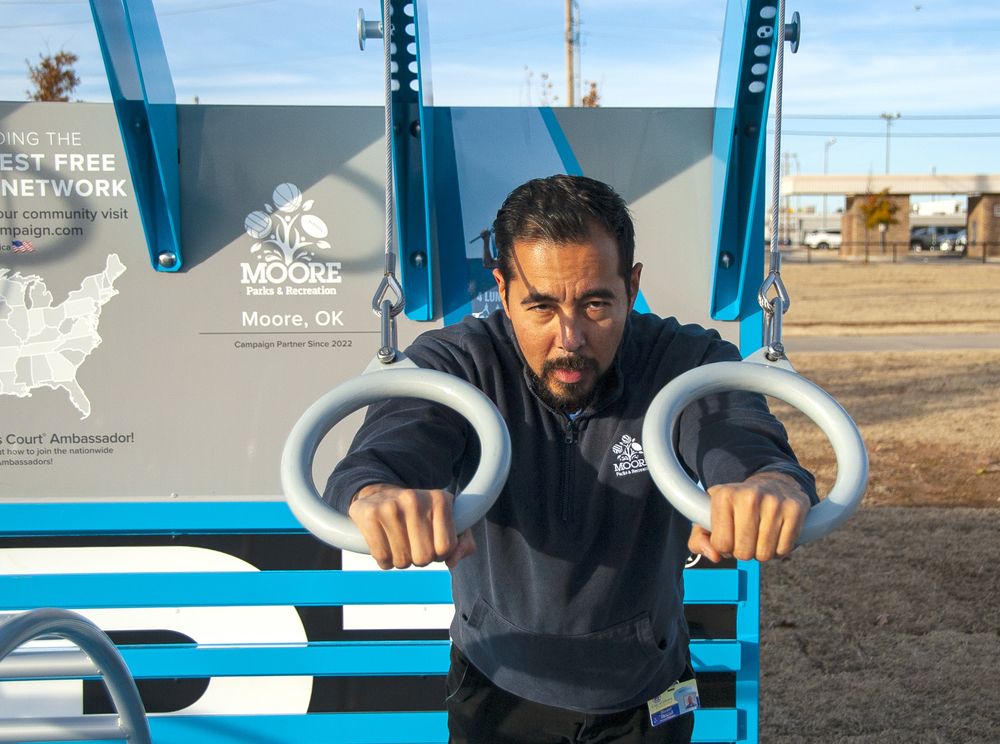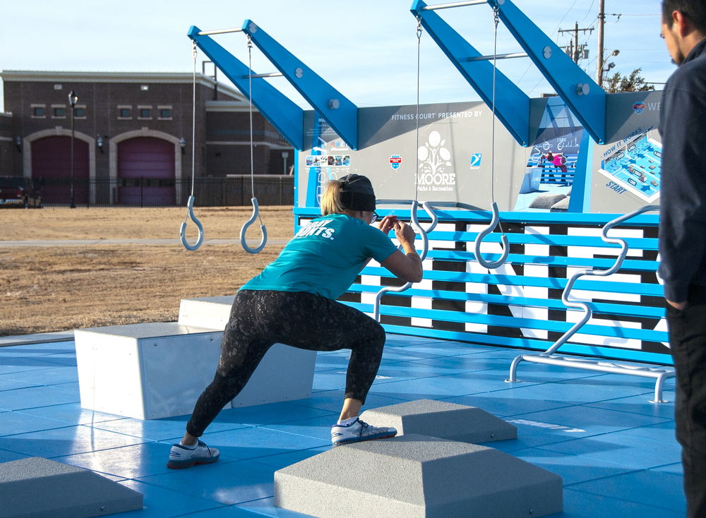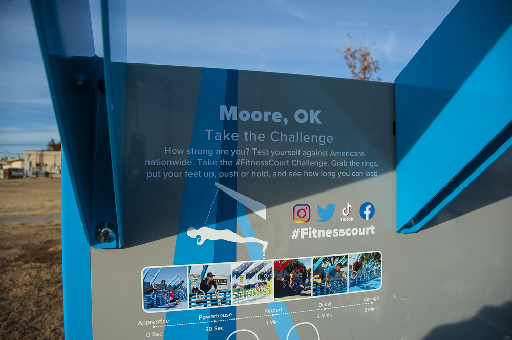 On Wednesday, Nov. 30, 2022 the Parks & Recreation Department launched Moore's first Fitness Court® at Fairmoore Park. Grant funds donated by National Fitness Campaign helped to make the new fitness court a reality.