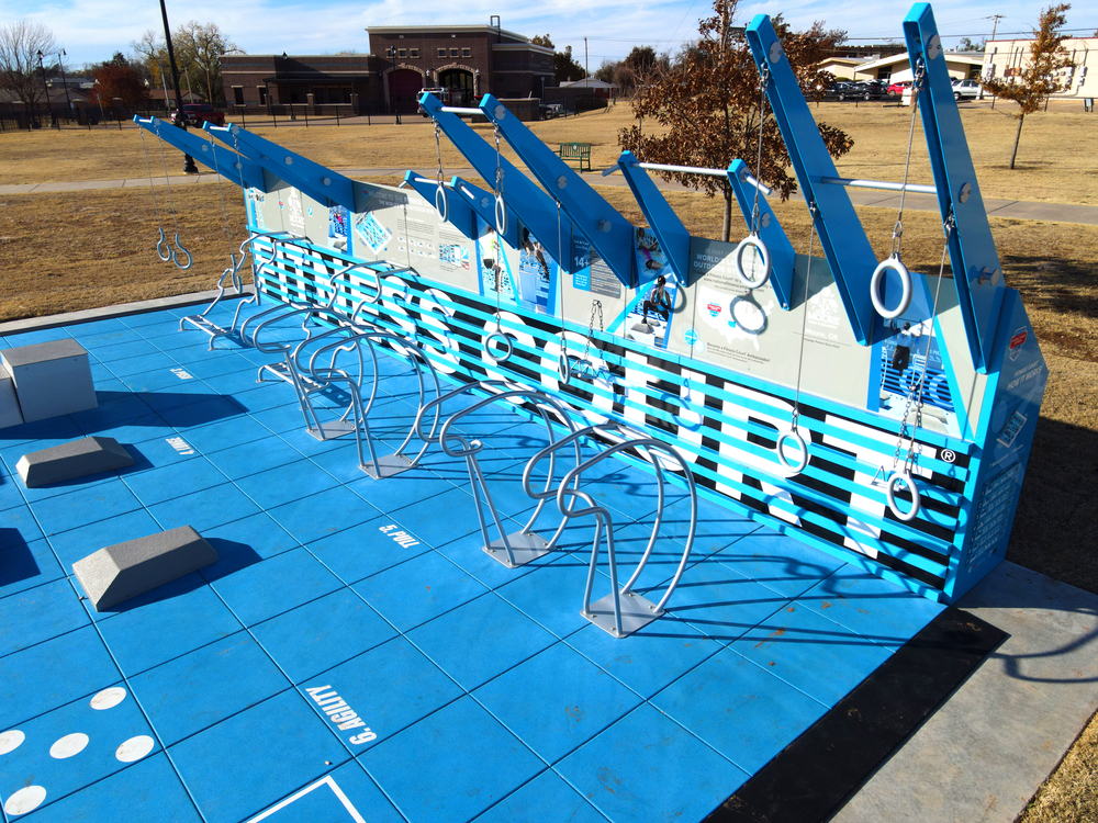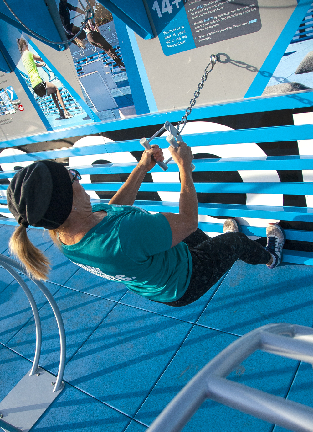 The Fitness Court® is a world-class outdoor bodyweight circuit training system designed for adults of all ages and abilities. The Fitness Court® is a powerful way to encourage physical activity and promote community wellness. Each Fitness Court is integrated with shock-resistant sports flooring and allows users at varying fitness levels to utilize the Court at the same time.